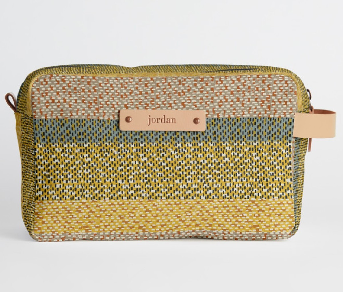 Ladies love dopp kits too. Here, beautiful prints designed by independent artists get topped off with a free custom foil-pressed leather tag personalized with her name or initials. For another great option, go for the catch-all pouch set, also with free personalization.