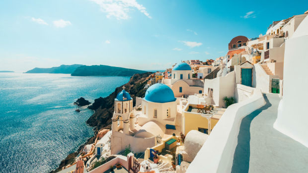 When you think of Santorini, Greece, you think of Oia. Maybe not by name, but you’ll recognize its white-and-blue buildings—particularly those blue-capped churches built right into the cliffside. They face volcanic islands and endless blues—the Aegean horizon meets the often cloudless sky. You can visit numerous archeological sites, like Byzantine castle ruins or Venetian fortress remains, or you can meander down the town’s 300 stairs to the port of Ammoudi for a fisherman’s sea-level perspective.