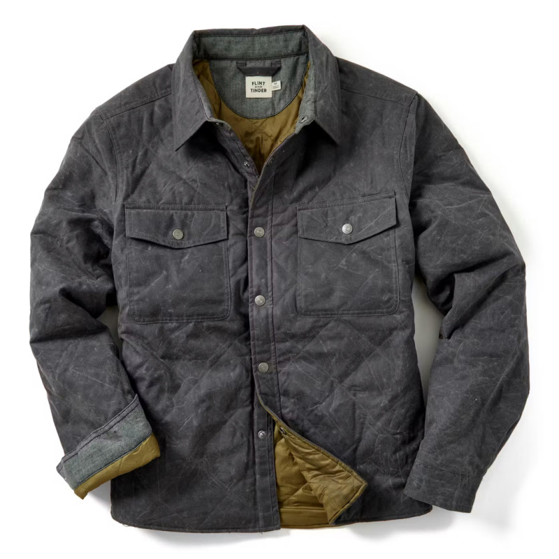 Flint and Tinder Quilted Waxed Shirt Jacket in Gray with Green Lining, From $172 (was $288) at Huckberry