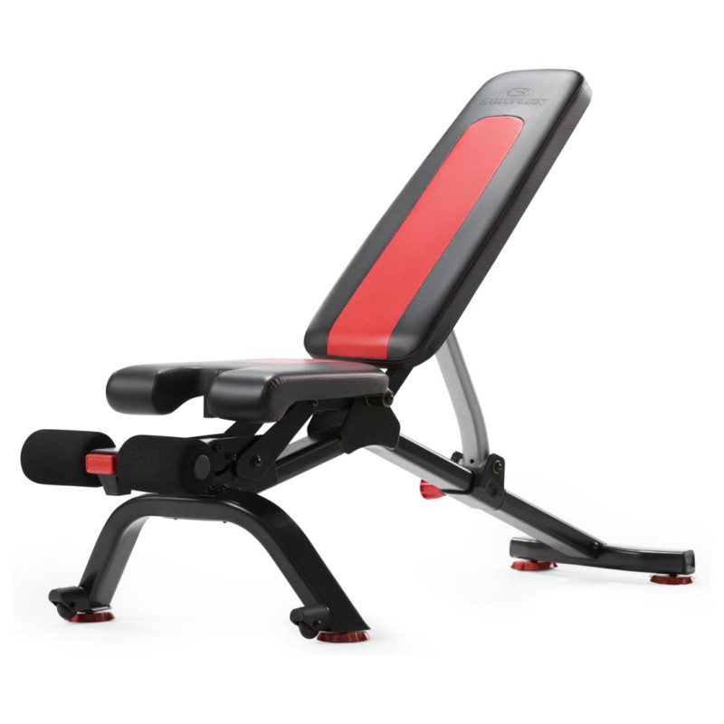 This weight bench weighs 70 pounds and measures roughly 28-by-50-by-61 inches at its maximum height. It's made from alloy steel and can withstand a load of up to 600 pounds. While most users won't be putting up that kind of weight, it does offer a certain peace of mind to know your bench has your back in more ways than one. It's also fully adjustable: It offers six different angles, including flat and decline, and breaks down with a single click of a button to save space when you're done using it. With the included leg hold, this BowFlex weight bench allows you to work nearly all muscle groups with exercises like classic presses, step-ups, decline sit-ups, and more.