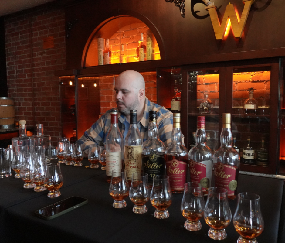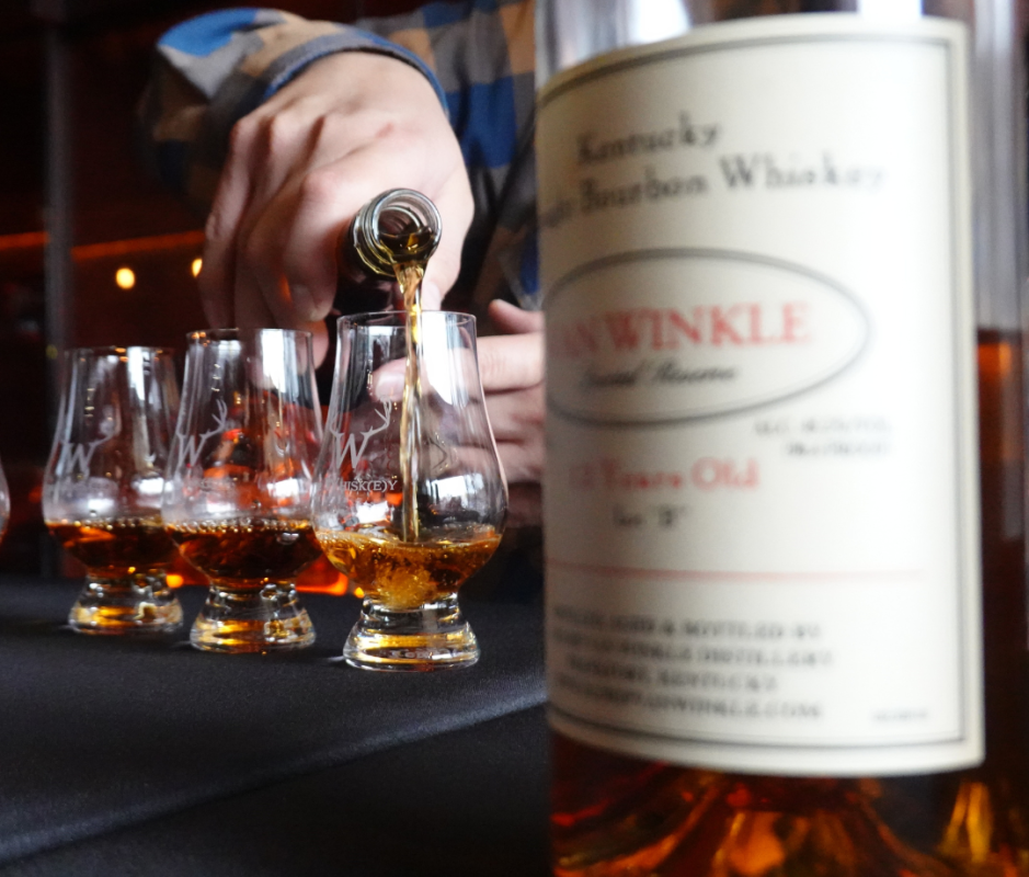 Recently, on a warm fall day, I stepped inside The Whisk(e)y to see a lineup of bottles that includes Old Rip Van Winkle 10 Year, Van Winkle Special Reserve Year 12 Year, W.L. Weller 12 Year, and W.L. Weller Antique 107 Single Barrel. Bernhal demonstrated how he originally came up with Pappy Juice.