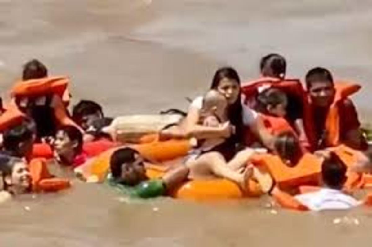 Harrowing photos from the scene show survivors trying to navigate their way to shore as firefighters descended upon the scene. A police boat and an ambulance from the Mobile Emergency Care Service also assisted in the rescue and recovery efforts.